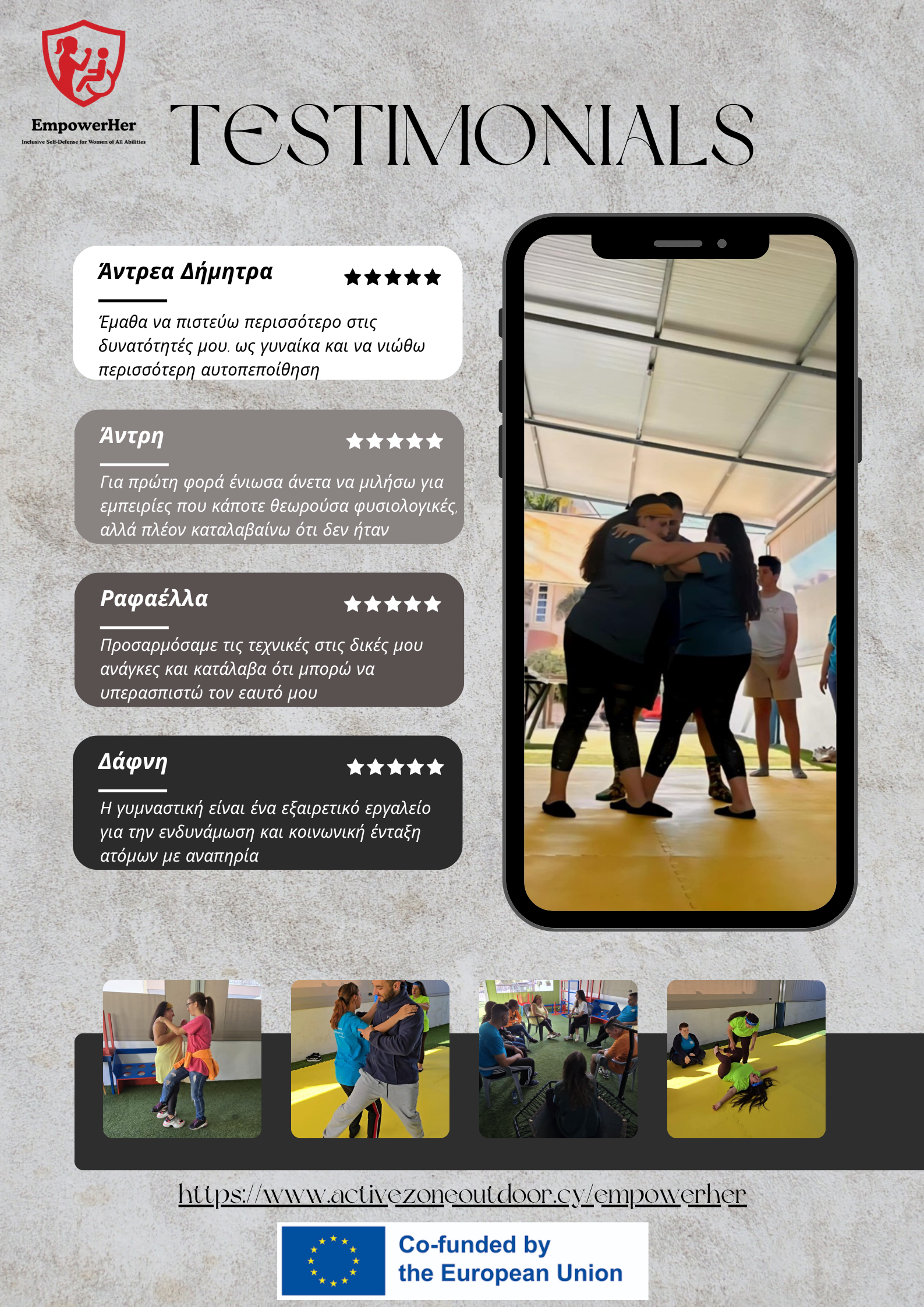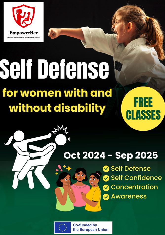 In the wake of the increasing incidents of violence against women in Cyprus and international research reports according to which women with disabilities becomes victims of violence twice as often as other women, the project "EmpowerHer: Inclusive Self-Defense for Women of All Abilities" seeks to jointly empower women with and without disabilities through comprehensive training in adapted self-defense techniques, which will enable them to enhance their confidence, resilience and proactive approach towards their personal safety.