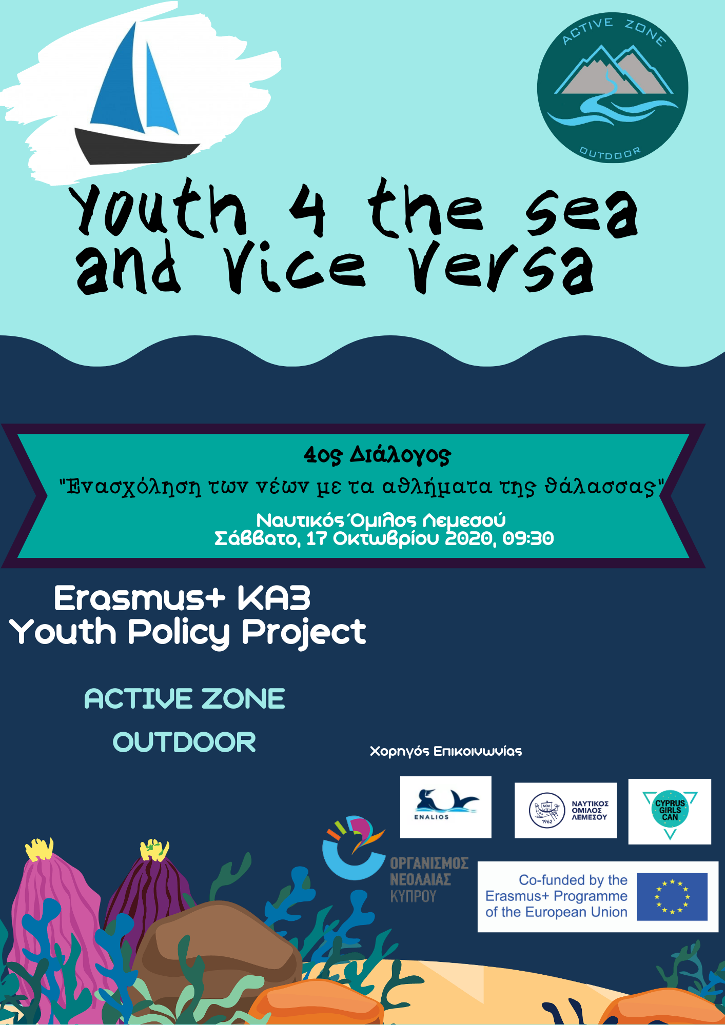 Acknowledging that youth participation in the democratic system is decreased in Cyprus year after year, the project "Youth 4 the sea and vice versa" aims at increasing the democratic participation of youth in the society through active engagement in dialogues with policy-makers in order to find feasible ways to cultivate a culture of sea awareness among youngsters in Cyprus.
